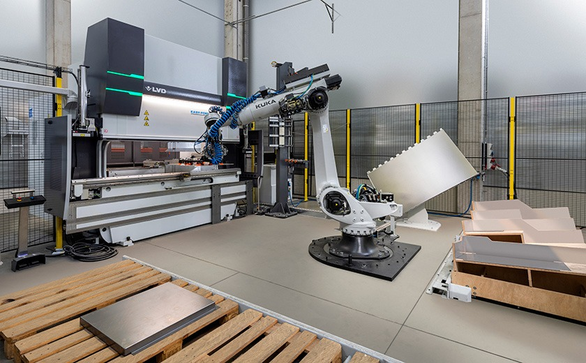 Para máxima flexibilidade, a Easy-Cell também pode ser operada manualmente. Os dedos do encosto traseiro da dobradeira foram projetados para dobra robótica e manual.
